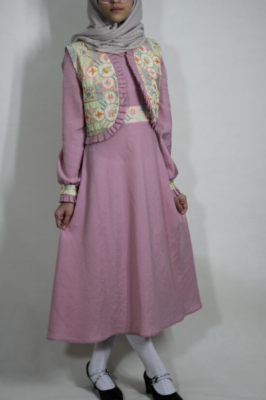 پیراهن همراه کراپ گلدوزی زیبای کوثررنگ صورتی و رنگ مشکی دخترا کراپ از پیراهن جدا هست و جدا میتونید استفاده کنید